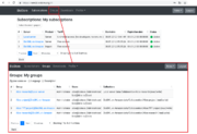 Here you can view detailed information about your subscriptions to BioUML servers (default page or Subscriptions on the top pane) or about your groups (Groups on the top pane), if any.